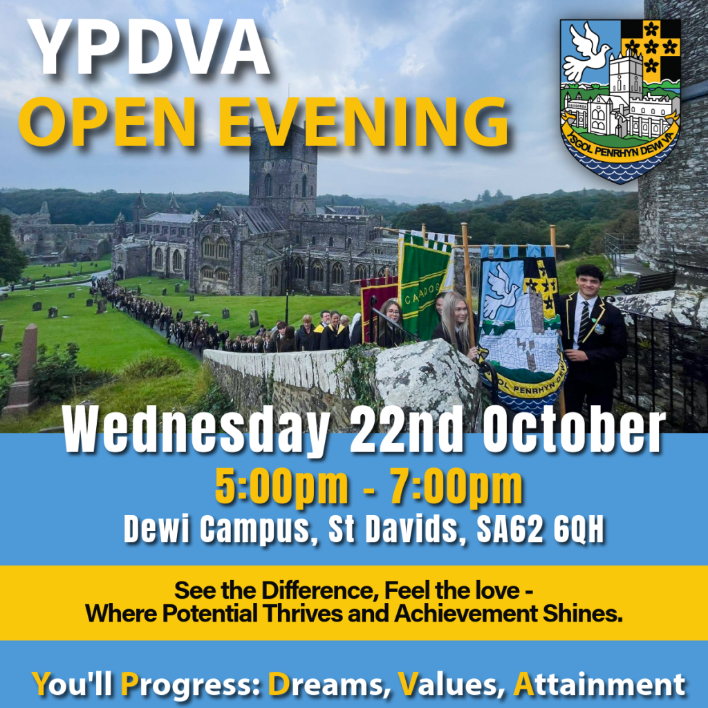 ST DAVIDS’ Church in Wales voluntary aided 3–16 school, Ysgol Penrhyn Dewi VA, is inviting families to its annual Open Evening on Wednesday, October 22, from 5:00pm to 7:00pm at the Dewi Campus.