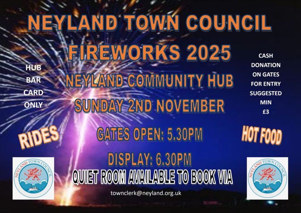 NEYLAND Town Council has announced details of this year’s community fireworks display, which will take place at the Neyland Community Hub on Sunday, November 2, 2025.