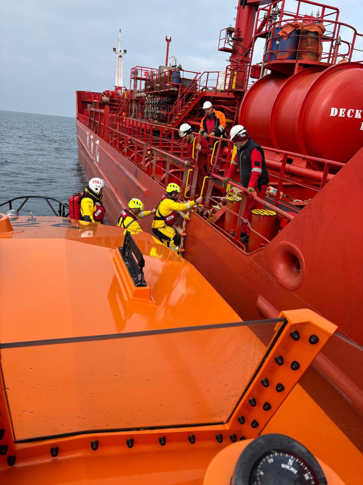 St Davids lifeboat crew assist casualty on tanker 22 miles offshore