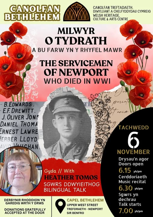 A HERITAGE Remembrance event will take place on Thursday evening (Nov 6) at 6:30pm in the Bethlehem Centre, Newport, Pembrokeshire.