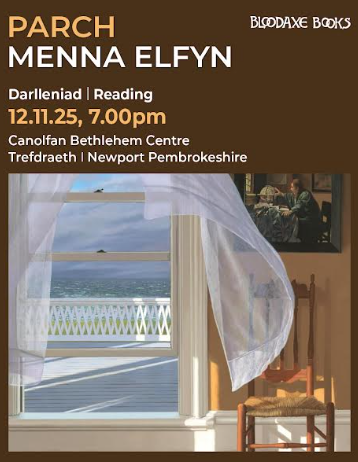 Menna Elfyn will present special readings in both Welsh and English from her latest collection, Parch. Her poetry explores powerful themes of language, identity, respect, and justice. Parch marks her sixth collection published by Bloodaxe, featuring English translations and several new works.