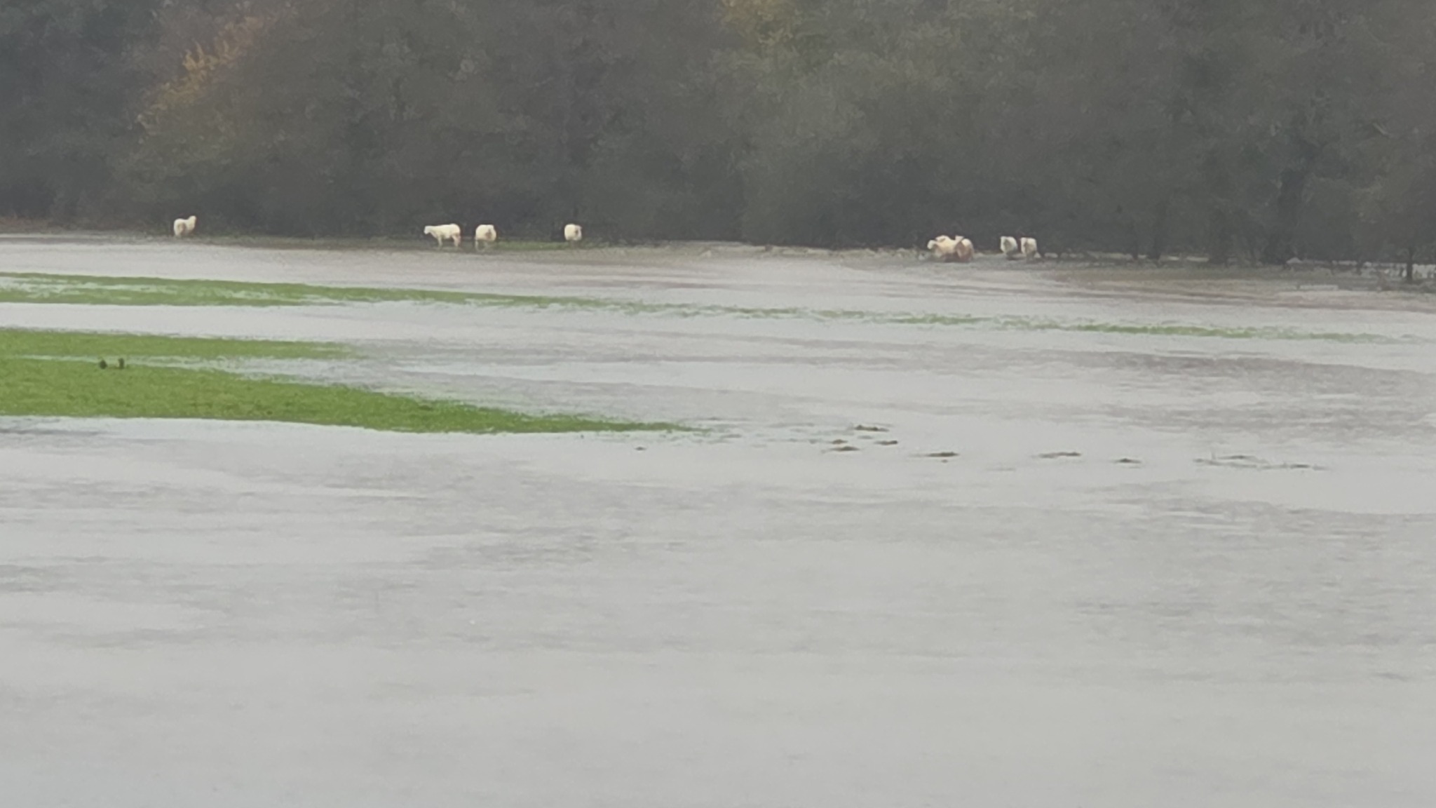 Locals posting on the St Clears – Sanclêr and surrounding areas Facebook group this afternoon (Tuesday) urged urgent action after noticing the animals trapped by rapidly expanding flood waters following heavy rainfall.