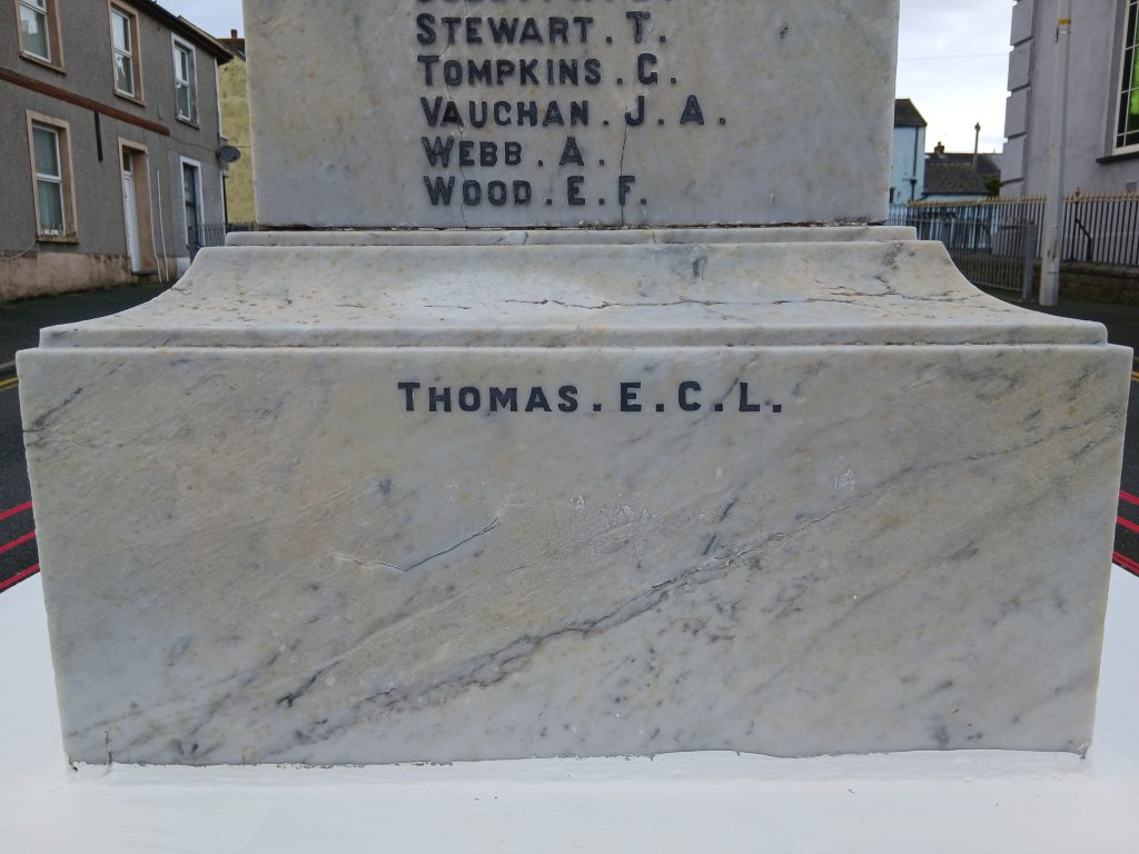 The name of Emlyn Cyril Langham Thomas has been added to the Neyland and Llanstadwell War Memorial on Lower Kensington Road, following research by local historian Dr Simon Hancock, who is also Pembrokeshire’s Armed Forces Champion.