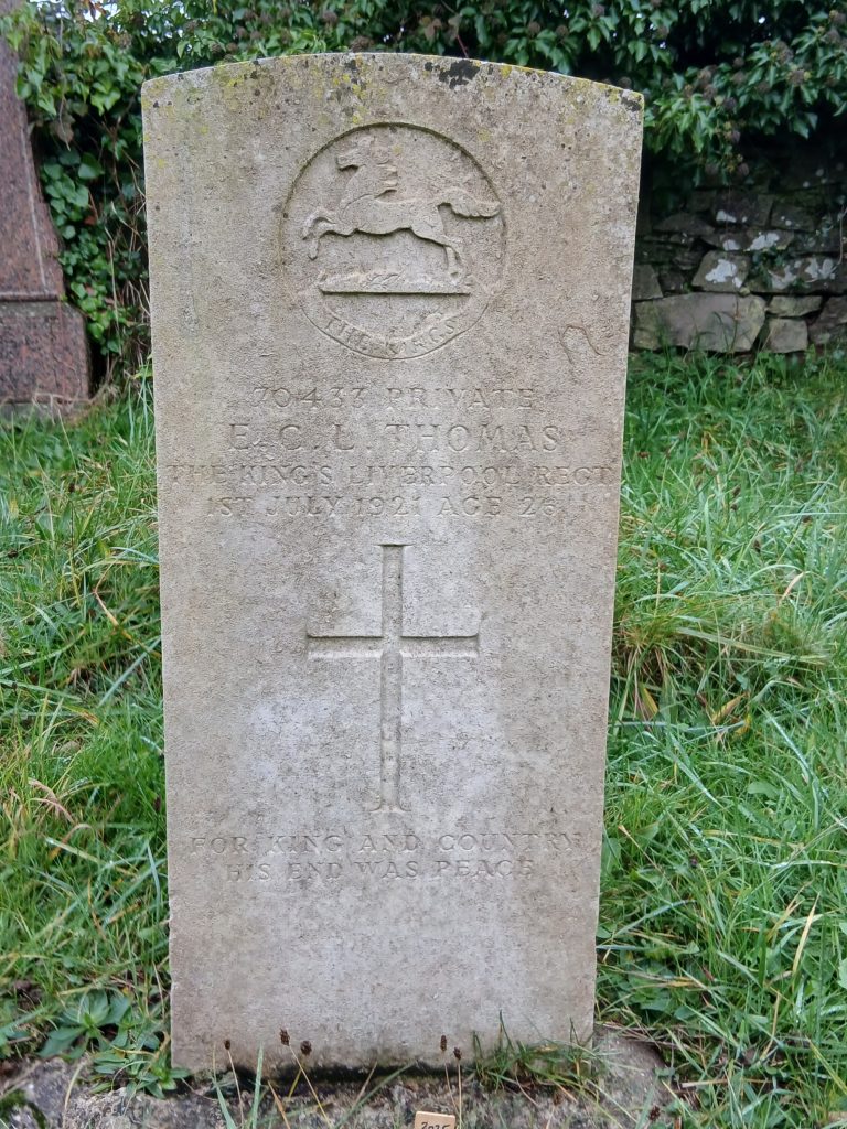 During the First World War, Emlyn served with the King’s Liverpool Regiment and was later transferred to the Labour Corps after being gassed on the Western Front. His health never recovered, and he died on July 1, 1921, aged just twenty-six.