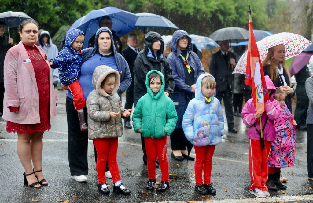 Despite the light rain, dozens of residents stood shoulder to shoulder to honour the fallen. Wreaths were laid by representatives of the armed forces, local groups, and schoolchildren, while prayers were offered for peace and remembrance.