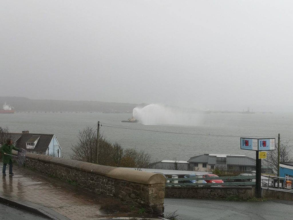 From the water’s edge, the sight of the tugboats’ sprays and the sound of ship horns added a uniquely local note of remembrance, honouring Milford Haven’s long association with the sea and the many servicemen and women connected to its history.