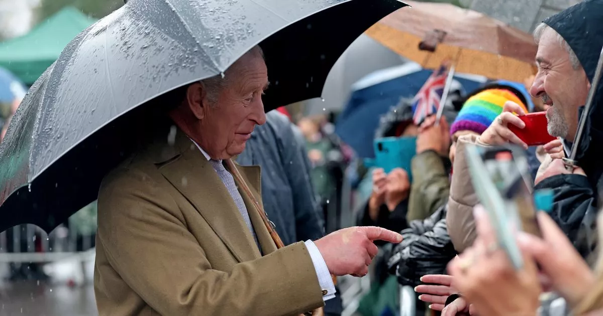 Despite Storm Claudia bringing heavy downpours across south Wales, dozens gathered outside the gates, sheltering under umbrellas and waving Union Flags as anticipation built. Some waited for more than an hour to catch a glimpse of the King.