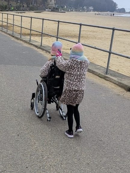 Phoebe and her identical twin sister, Mia, were born ten weeks early. Phoebe suffered a bleed on the brain shortly after birth and was later diagnosed with cerebral palsy. She is a wheelchair user.