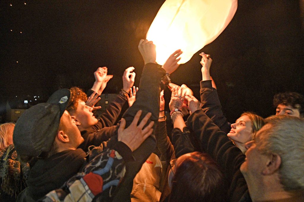 Later that evening, shortly after 6:00pm, friends and relatives gathered at the Quayside in Cardigan for the first of two acts of remembrance to celebrate her life. Lanterns were lit and released into the night sky above the town as some of Corrina’s favourite songs were played.