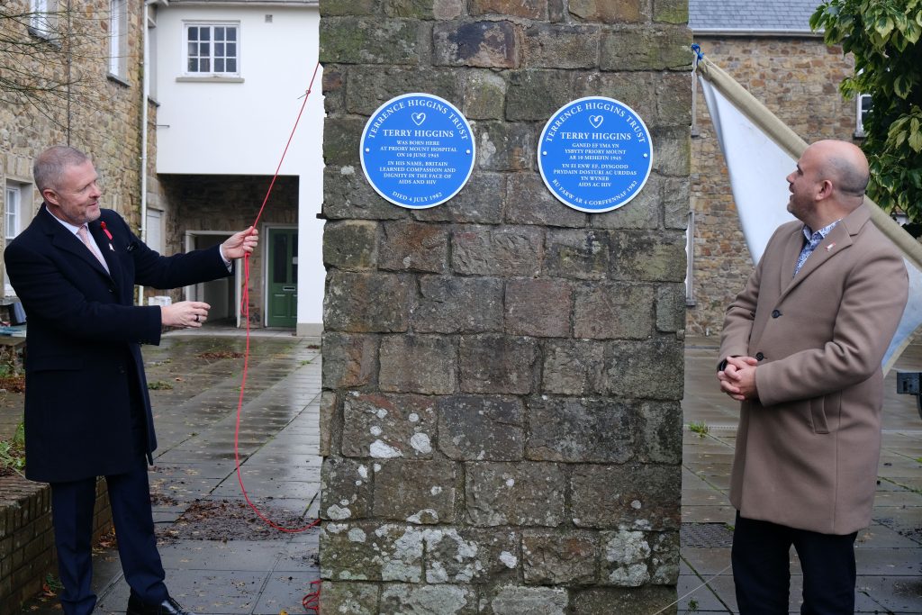 Two plaques – one in Welsh and one in English – were installed on the stone entrance pillars at Glebe House, marking the first time Terry Higgins has been formally commemorated in the town where he grew up.