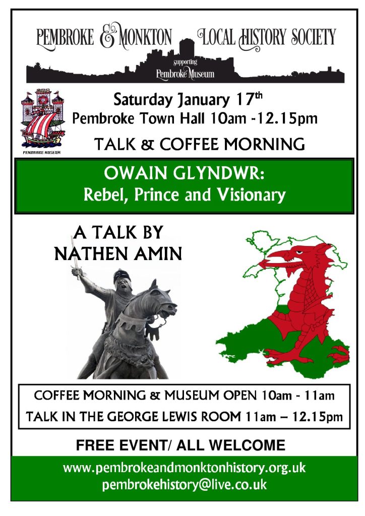 PEMBROKE & MONKTON Local History Society will return in the New Year with a special talk by leading Welsh historian Nathen Amin at Pembroke Town Hall.