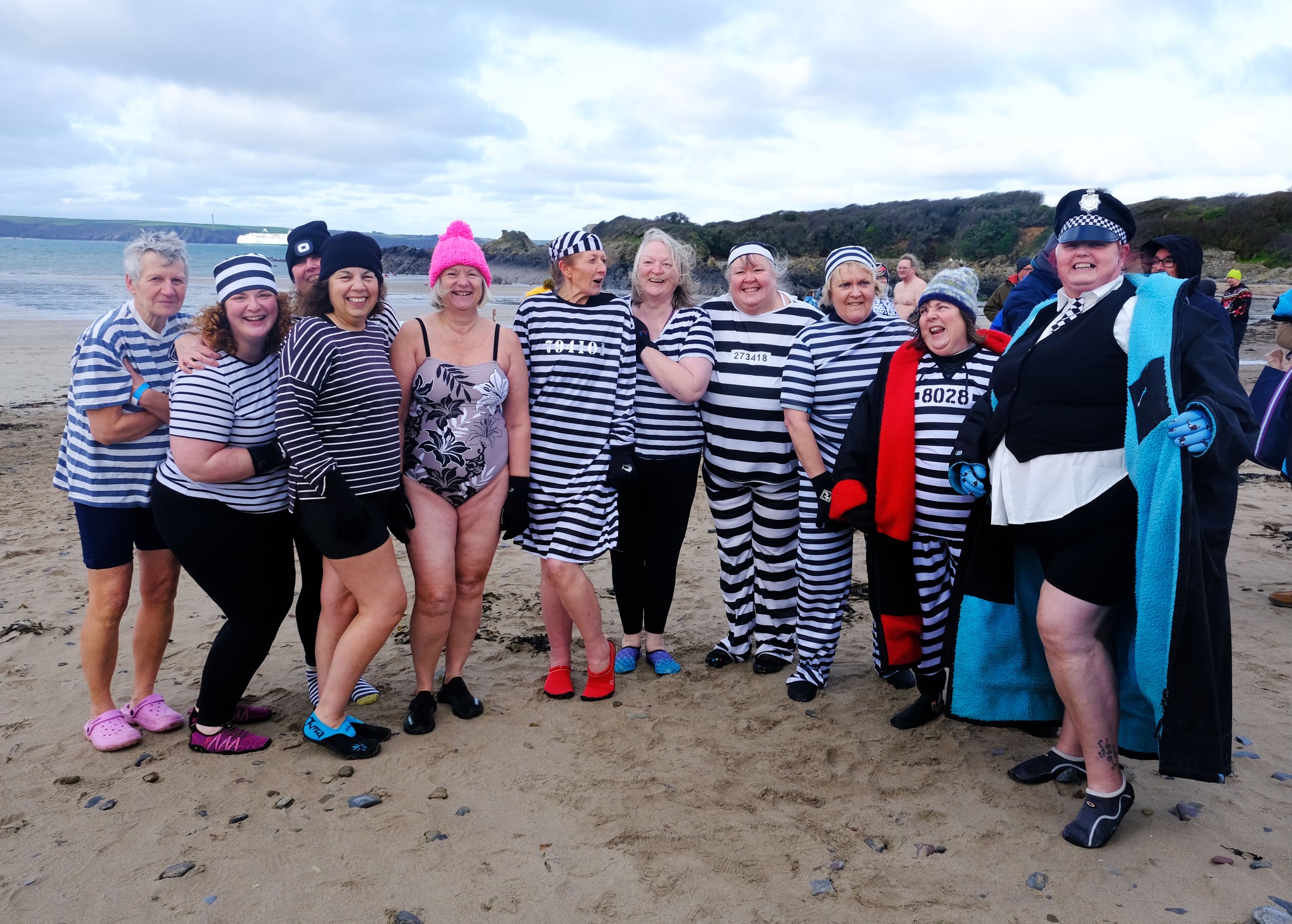 Crowds gathered along the sands at West Angle Bay to cheer on participants, with a mix of seasoned dippers and first-timers taking to the sea in fancy dress and wetsuits for the traditional New Year challenge. Despite the icy conditions, spirits remained high, with supporters lining the beach to clap, shout encouragement and donate.