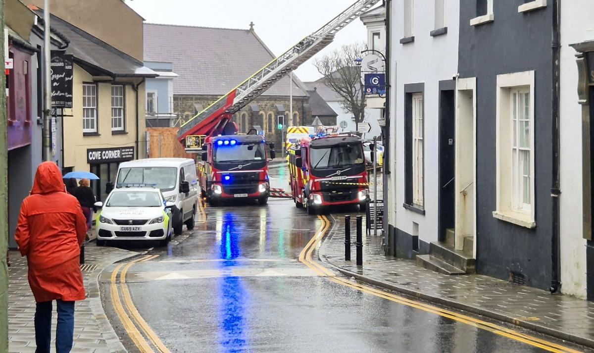 Crews from Fishguard and Haverfordwest Fire Stations were mobilised, with the aerial ladder platform from Haverfordwest used to reach the roof safely.