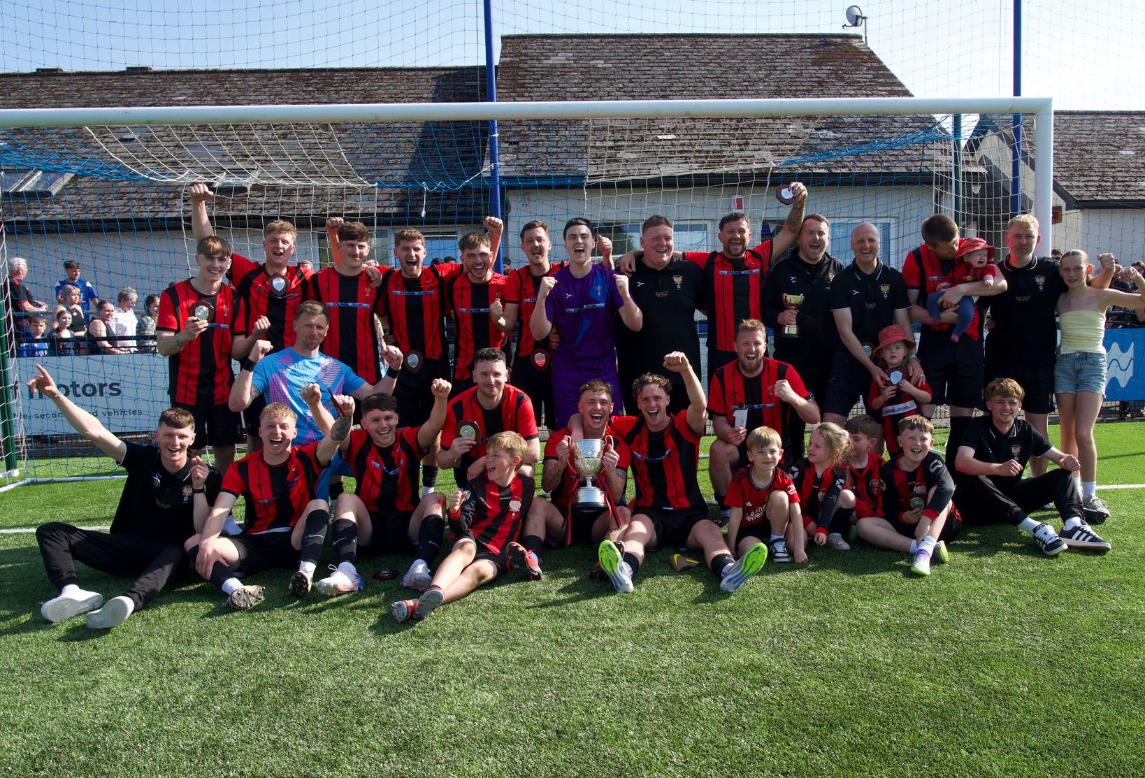 Cup winners: Goodwick United celebrate their Pembrokeshire Senior Cup final victory over Monkton Swifts at the Ogi Bridge Meadow (Pic: Ethan Ellis).