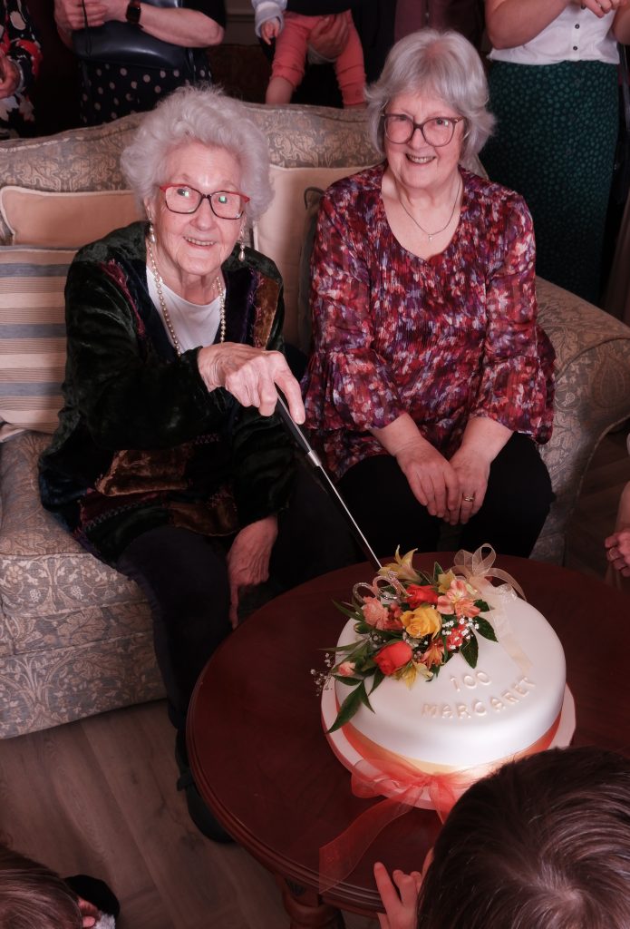 Cover pic: Century celebration: Margaret Lewis cuts her 100th birthday cake surrounded by family (Pic: Chris Harte)