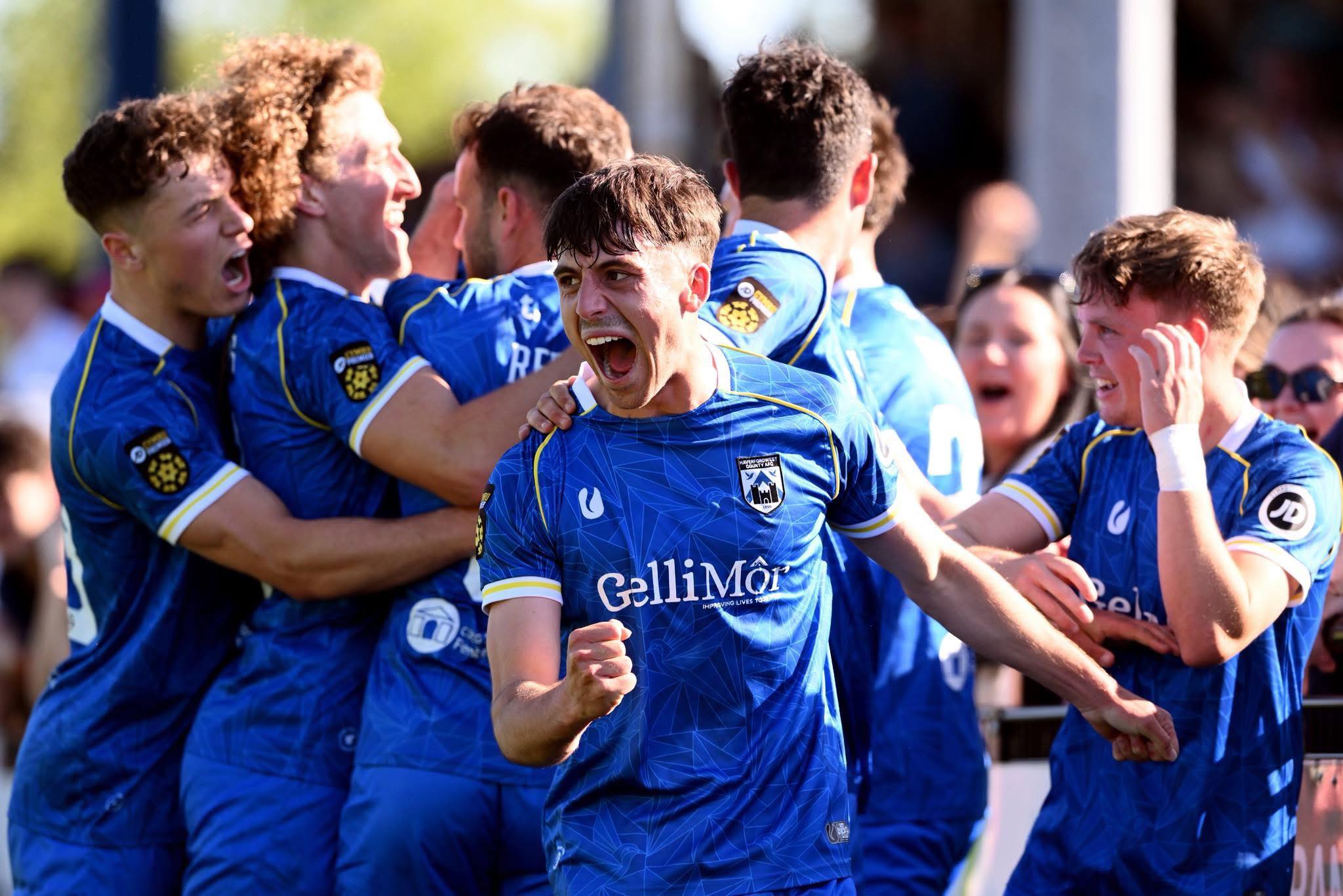 But with virtually the last kick of the game, Cwm’s goalkeeper Kai Rees strode forward for a final desperate attack and unleashed a stunning 25-yard volley to make it 3-3, sparking wild celebrations around the ground.
