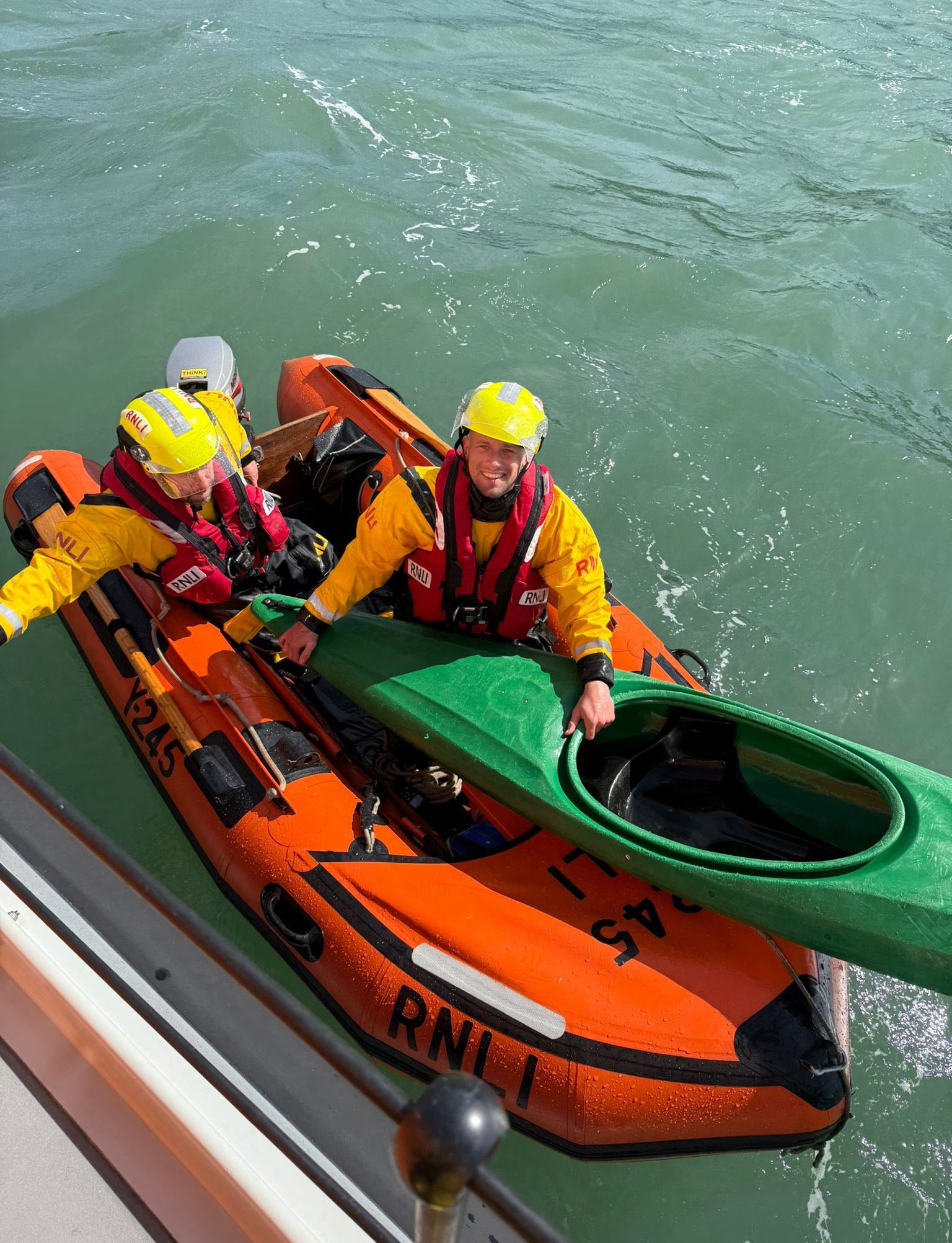 Easter Monday shout: St Davids RNLI recovers a drifting kayak off Solva after it was reported missing days earlier (Pics: RNLI)