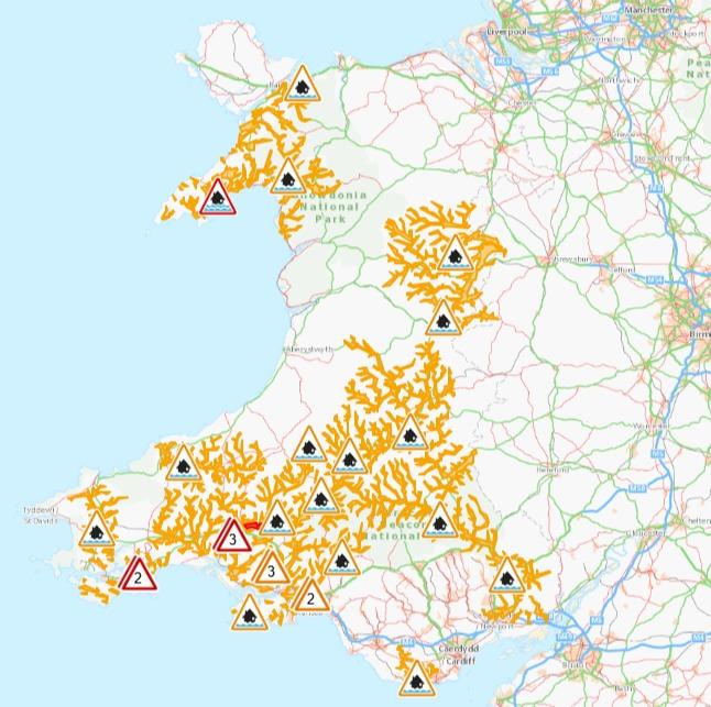 Natural Resources Wales (NRW) has confirmed that four flood warnings are currently in place, meaning immediate action is required, while a further 16 flood alerts have been issued where flooding is possible.