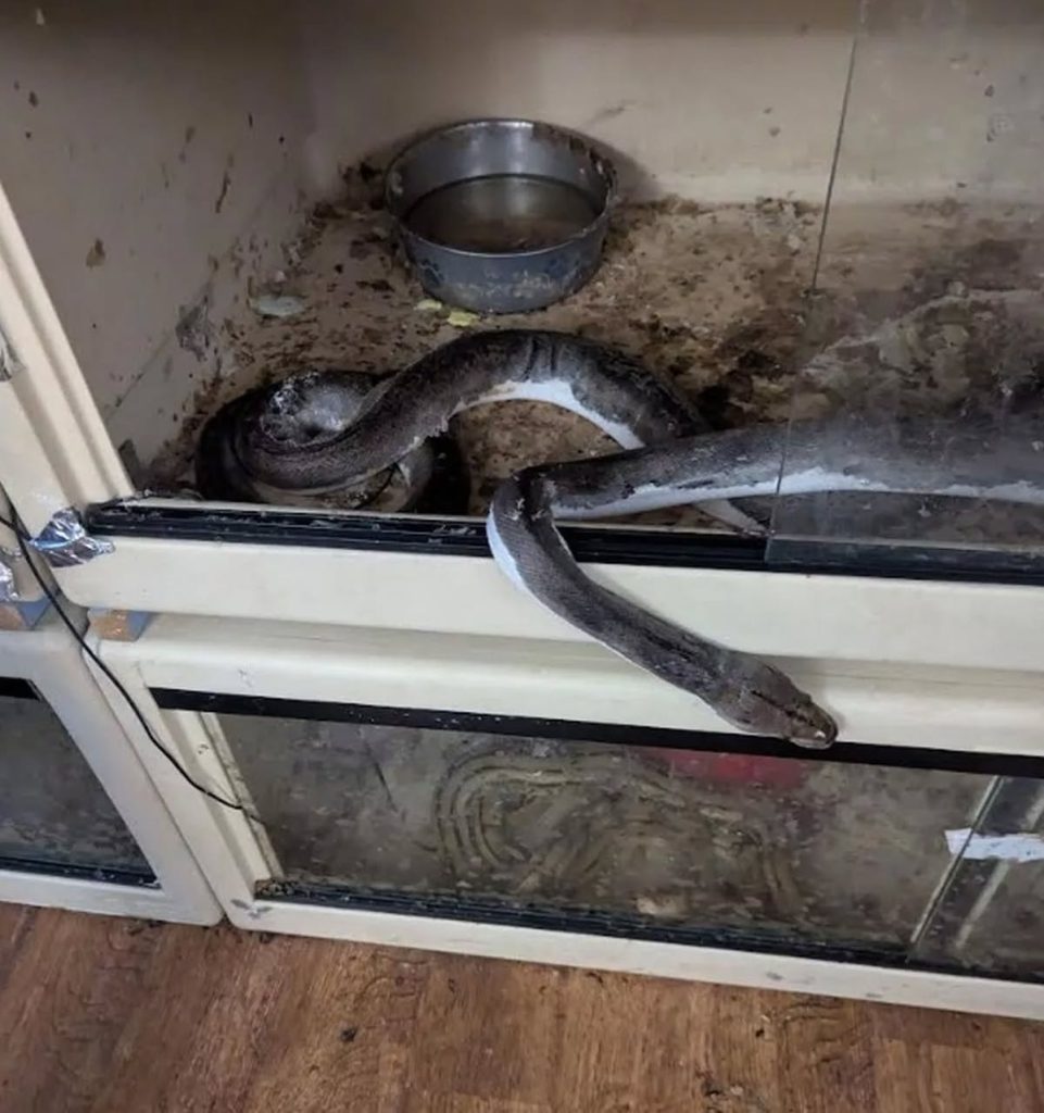Once in the house, inspectors found 29 dogs and puppies – including some just days old – along with 17 snakes, a tortoise and a gecko.