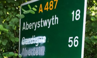 Road sign vandalism sparks political row across west Wales