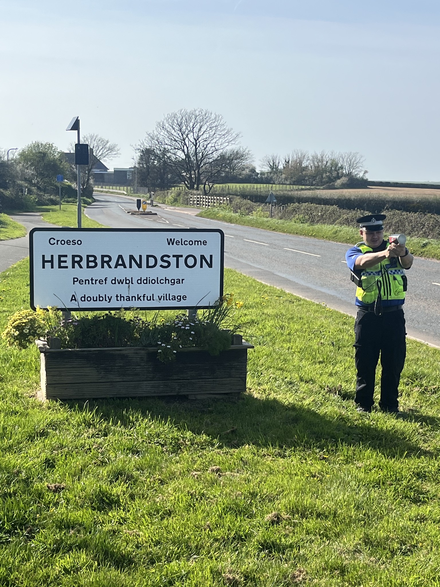 Concern over speeding in Herbrandston has prompted a local police response, with PCSO Adam out in the village carrying out speed checks after residents raised the issue through DPP Connect.