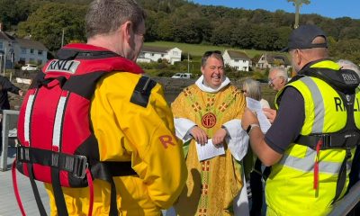 Rev Wyn Maskell leads prayers of safety with support from St Dogmaels Rowing Club CARDIGAN lifeboat crews gathered on Sunday morning (Sept 28) at The Moorings...