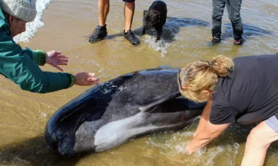 AYOUNG whale has died after becoming stranded on Llangennith beach in Swansea. The 12-month-old long-finned pilot whale was first spotted at around 2:30pm on Monday. A...
